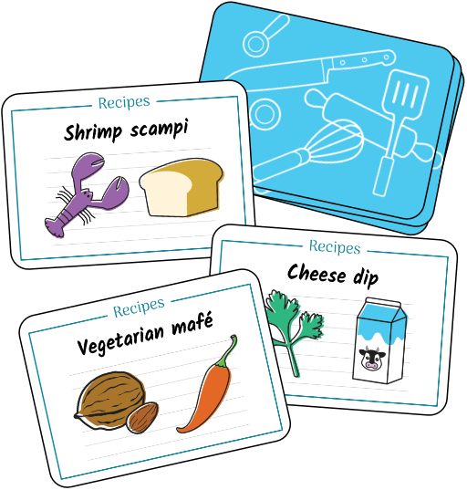 Second were the recipe cards (front and back), 21 in all: