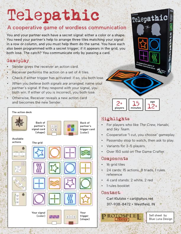 Telepathic is a tabletop game by Carl Klutzke. It was already in print when he asked me to help him update the design for version 2.0.